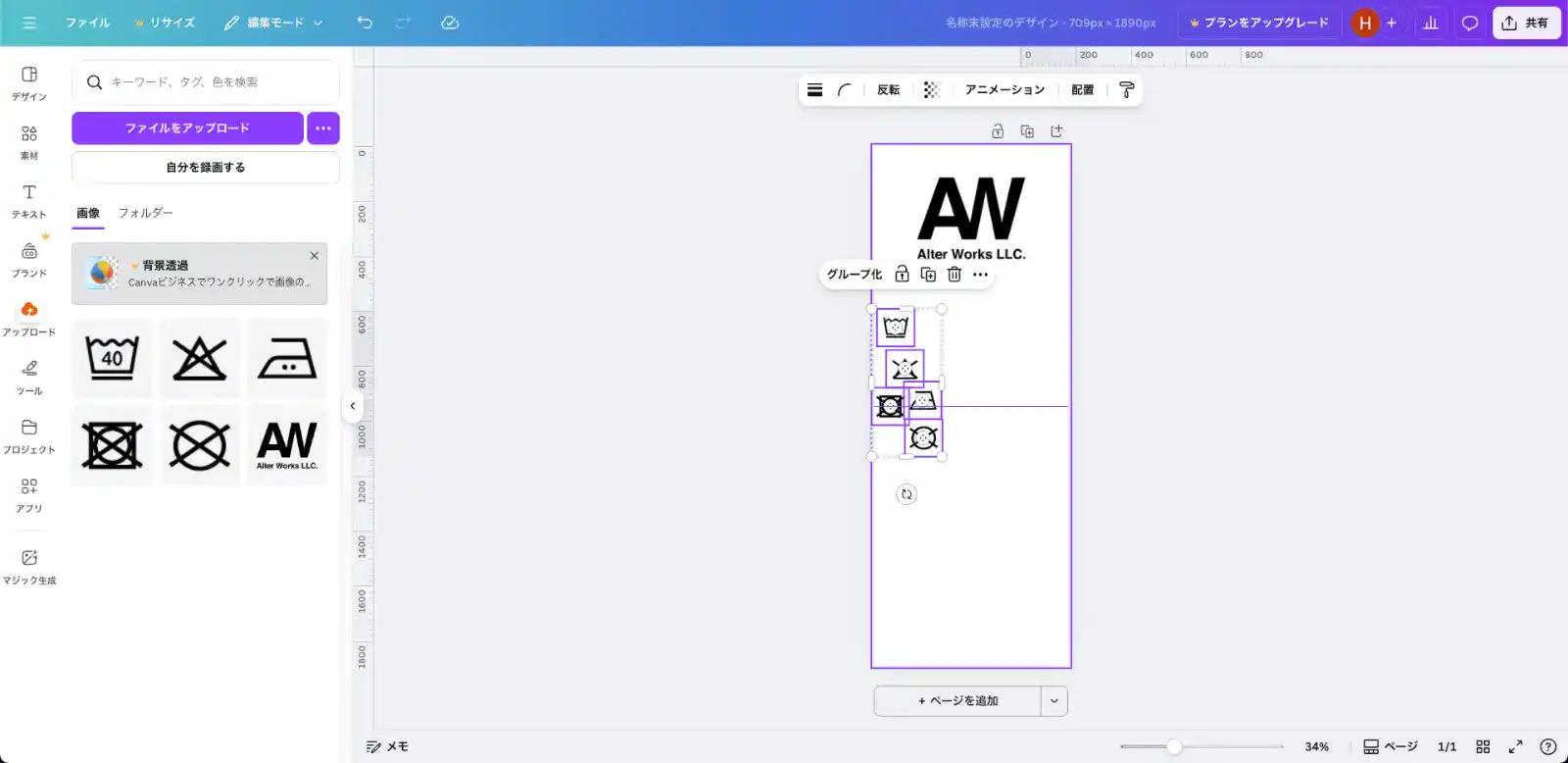 5-3. ロゴと洗濯マーク画像を先にレイアウトする