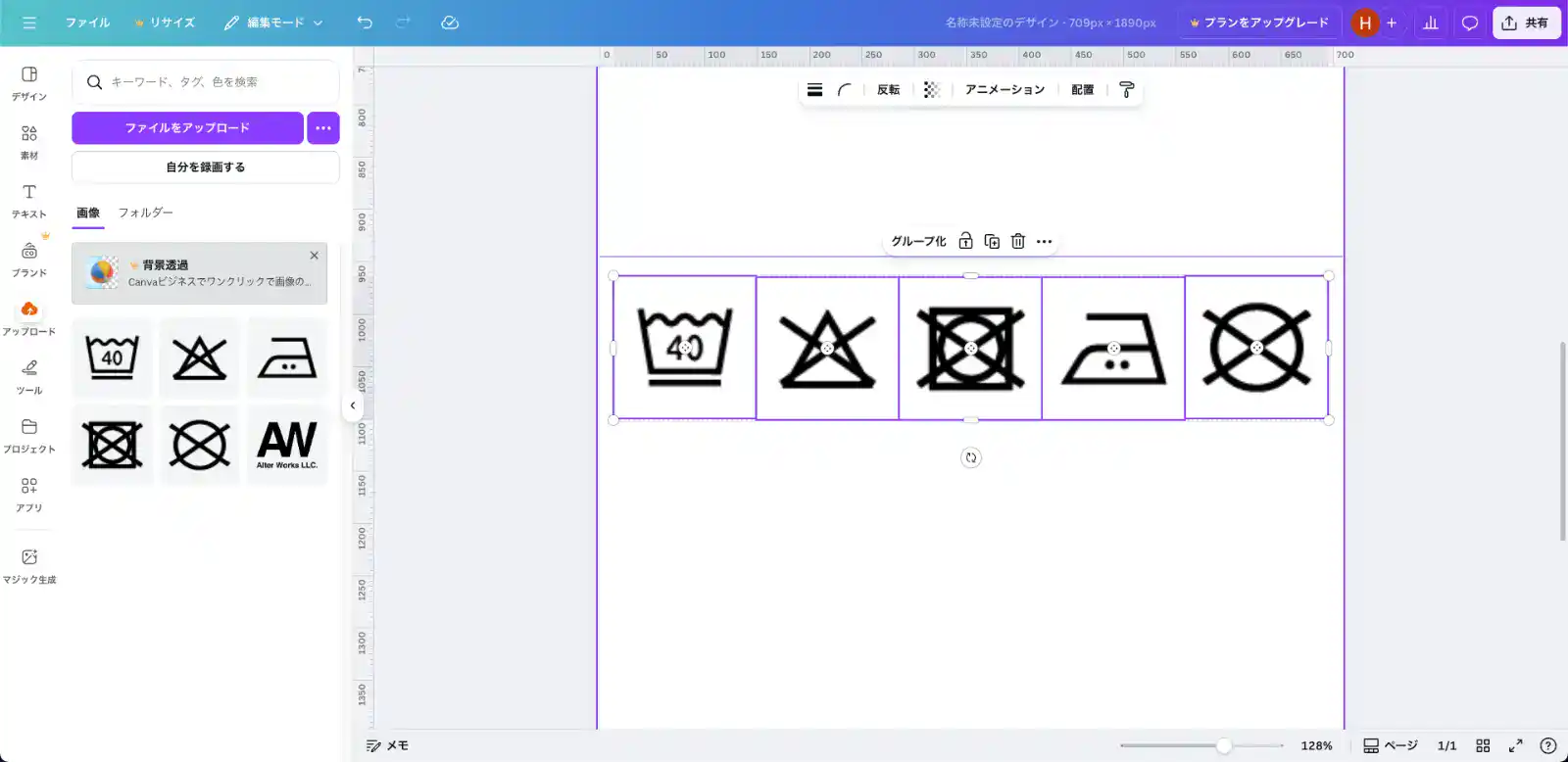 - アイコンをすべて選択して [グループ化] しておく