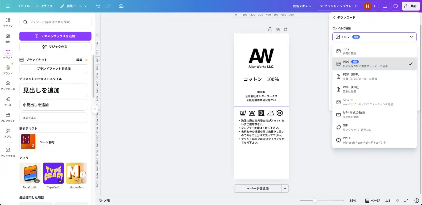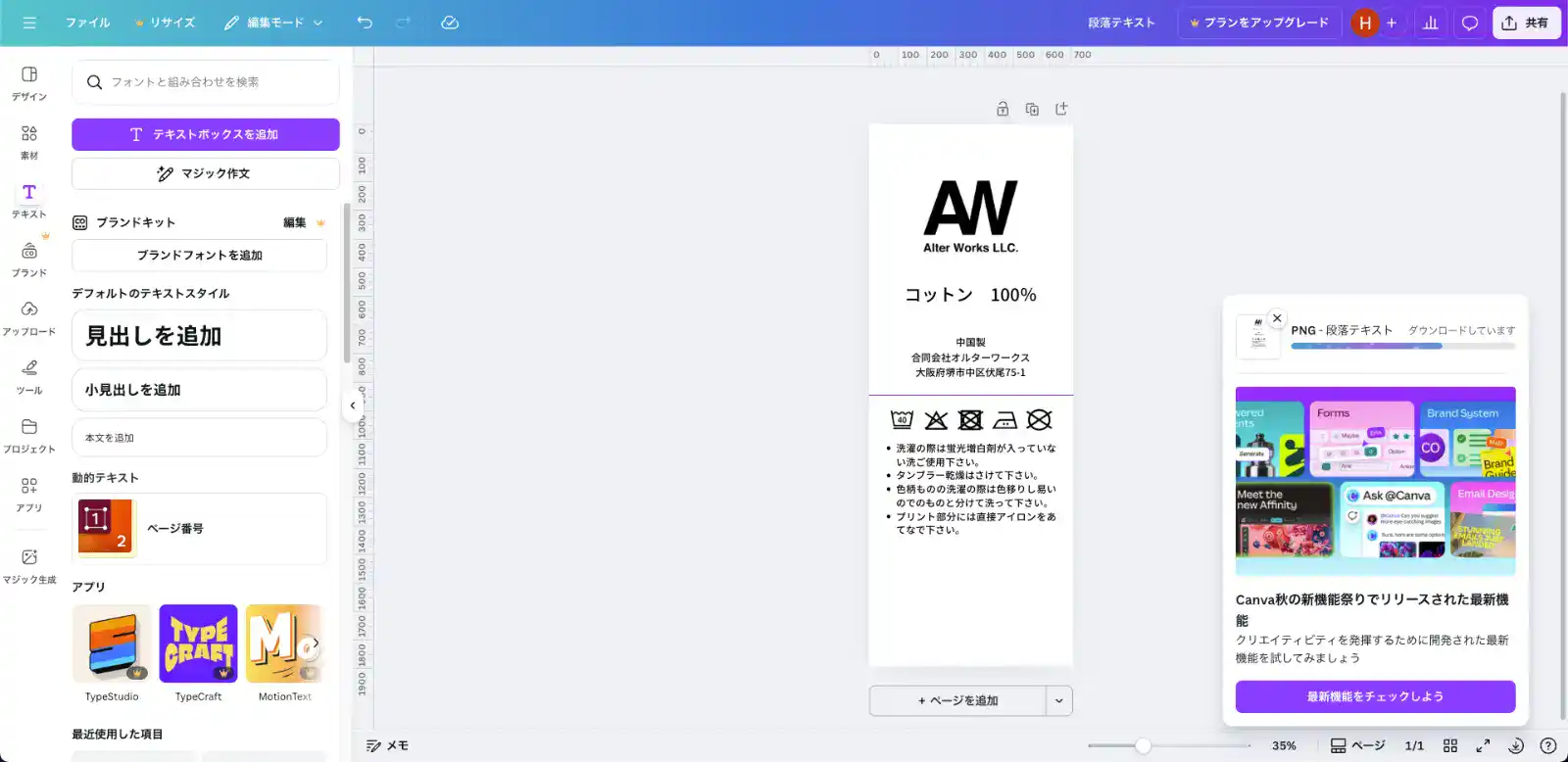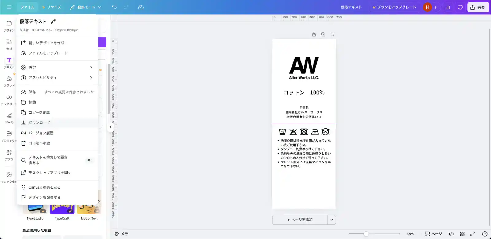 - Canva無料版でも、洗濯ネームデータは作成可能