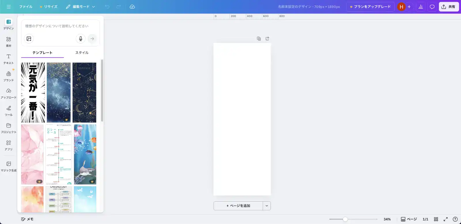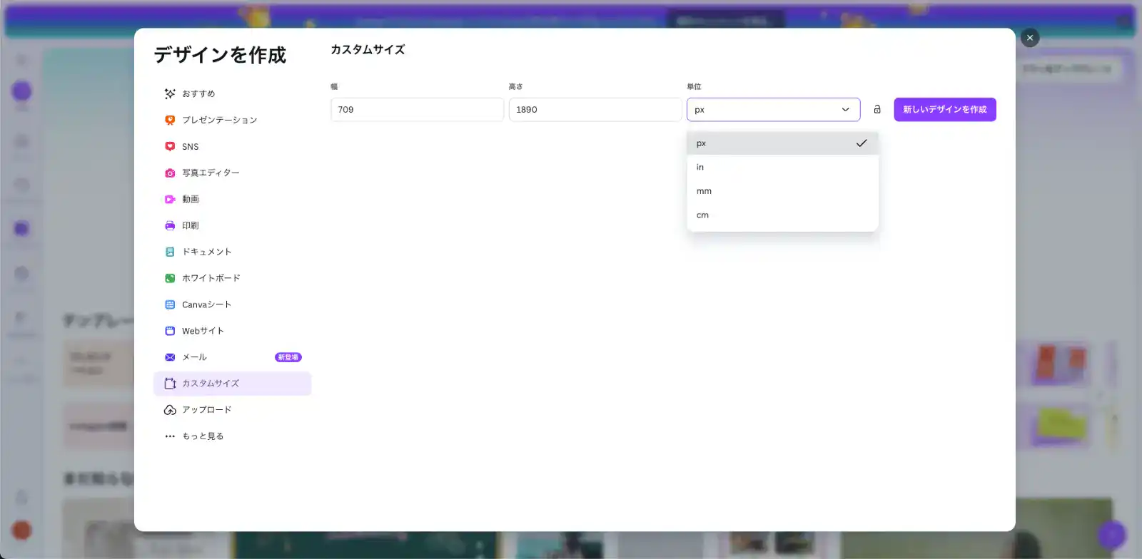 5-1. 新規デザイン(709×1890px)を作る